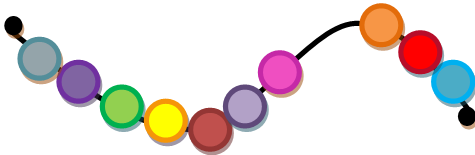 To make a set of Active Response Beads, the teacher strings the 10 beads on the cord and ties a knot at each end.