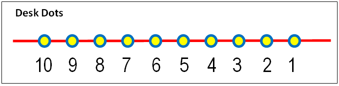 managing sets of beads or having emotionally upset students leave their seats to retrieve bead sets. A low-key adaptation of the ARB-TO is the substitution for the beads of a series of 10 dots numbered in descending order printed on a slip of paper and affixed to the student's desk. The student is then trained, when directed by the teacher, to apply the ARB-TO count-down/calm-down procedure using dots.